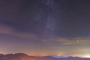 Télen a kora esti égbolton, ha nyugat felé tekintünk, akkor a Hattyú csillagképet pillanthatjuk meg. Igazán sötét ég alól még a Tejút halvány porfelhőit is észrevehetjük. Nekem ennek a megörökítése volt a célom Salgó-várából. Az előtérben Somoskőújfalu fényei színesítik meg a Cserhát hegyeit. Canon M50 & Sigma 16mm F/1.4 ISO 1600 F/2.2 11x15 s