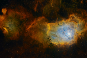 2025.05.25 - 28. között Namíbiában, az Isabis-völgyben készült felvételem a Nyilas csillagképben található, Messier 8 katalógusszámú Lagúna-ködről. Itthonról is kedvelt célpont, bár egy kicsit mindig túl alacsonyan van délen. Namíbiában viszont a zenitig emelkedik, emiatt kiválóan fotózható. A felvétel készítéséhez keskenysávú szűrőkészletet használtam, a képeket a Hubble-paletta szerint dolgoztam fel. A felvételen az IC 4685 emissziós köd is látható, a Lagúna-ködtől balra. A Messier 8 (Lagúna-köd) egy nagy kiterjedésű, gázból és porból álló csillagbölcső, aminek hidrogénjéből új csillagok születnek. A fiatal, forró csillagok erős UV sugárzása a hidrogént ionizálja és gerjeszti, emiatt a hidrogénatomok a 656 nm-es hullámhosszban kisugározzák az extra energiát. Ezt a hullámhosszot mi vörös fénynek fogjuk fel. A már megszületett csillagok "csillagszele" a köd szerkezetébe érdekes formákat vág. A sötétebb csomókban és nyúlványokban pedig csillagközi hideg por látható. Giovanni Hodierna fedezte fel 1654. előtt. 4 000-6 000 fényévre található a Földtől, 50-110 fényév a hosszúsága.