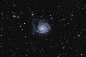 Márciusban kezdtem el fotózni ezt a látványos galaxist. Több éjszakán keresztül gyűjtöttem a képeket, amikből sokat ki kellett szelektálni a fátyolfelhős, párás időjárás miatt. A képek UV/IR szűrővel készültek, de így is elég szépen látszódnak az aktív csillagkeletkezési területek. Az M101 (Messier 101), közismert nevén a Szélkerék-galaxis a Nagy Medve csillagkép irányában látható, lapjával felénk forduló hatalmas spirálgalaxis, ami körülbelül 24 millió fényévre található a Földtől. A képen jól megfigyelhetőek a galaxis spirálkarjai, a bennük húzódó sötét porsávok, valamint a fényes, rózsaszínes HII régiók, amelyek hatalmas csillagkeletkezési területek.