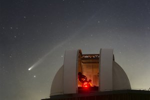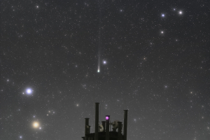 Tovább az észleléshez »Nemcsak távcsővel, hanem teleobjektívvel is lefotóztam az üstököst. Nagyon hangulatos volt a hajnal téli csillagképekkel, állatövi fénnyel, légkörfénnyel és nyugalommal. Picit hűvös volt, de annak ellenére kitartottam világosodásig. Az üstökös pont a kilátó fölé fordult be. Először a kilátót fotóztam, majd utána lett indítva az óramű és akkor már ment az átlagolt kép az üstökösre. Elég nagy szél fújt, de hát az hozzátartozik az őszhöz. Október 11.-étől már elég későn kel a Hold, hogy esetleg meg lehet próbálni fotózni az égi vándort, de majd október 20.-ától lesz izgalmas a helyzet, amikor az üstökös átkerül az esti égboltra. :)