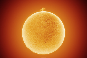 Tovább az észleléshez »Az elmúlt hétköznapokon volt egy-egy derült délelőtt, amikor le lehetett fotózni égi kísérőnket. Ezt én most a nagy naptávcsővel tettem egy kis szűrő-hangolás után. A mostani időszakban ez a távcső nem nagyon látott napfényt, meg kb mi sem, de ez majd a tavasz közeledtével meg fog változni úgyis. :) Két sorozatot fotóztam, a másodikat hosszabb záridővel, hogy a protuberancia jól látszódjon. A normál fényességű korongfelvételt negatívba állítottam, így szépen kijönnek a filamentumok is.