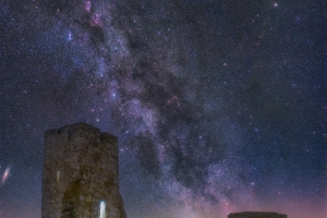 Egy merész elképzelést valósítottam meg ezzel a képpel: a téli Tejút északnyugati részét szerettem volna megörökíteni, a Cassiopeia csillagkép környékén. Ez a régió az egyik legnehezebben fotózható terület, hiszen halvány ködösségek és megszámlálhatatlan csillag alkotja, amelyek finom kontrasztját nem könnyű visszaadni. A megvalósításhoz kivételesen sötét égboltra volt szükség, ezért választottam a Soltszentimrén található Csonka-tornyot. Ez a 11. századi várrom nemcsak történelmi hangulatot ad a képnek, hanem ideális helyszínt biztosított eddigi legrészletgazdagabb asztrotájképem elkészítéséhez.
