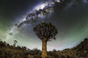 Namíbiában a kopasz gránitcsúcsok több száz méterrel törnek a csillagos égbolt felé, melynek a fénye éjszakánként megderíti ezeket a sziklákat, kellemes sárgás fényt adva, melyet az emberi szem éjjel sajnos nem érzékel.