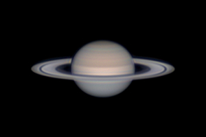 150x: északi pólussapka azonnal látszik. Délen is van valami, a sarkvidék valamivel világosabb a korong többi részénél, egy kontrasztos barna sáv választja el.