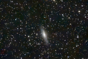 Az NGC 884 és NGC 869 a Perseus kettős halmazt alkotó két nyílthalmaz a Perseus csillagképben, a Cassiopeia és az Andromeda csillagképek között. A két viszonylag közeli, fényes nyílthalmaz szabad szemmel is látható ködös foltként, és nagyszerű célpontok kisebb távcsövekkel. Az amatőr csillagászok egyik kedvence, kiválóan fényképezhető és megfigyelhető. A két halmaz már binokulárral is jól láthatóvá válik, csillagokra bomlik. Az Ikerhalmaz egyenként 350-400 csillagot és megközelítőleg 5000 naptömegnyi anyagot tartalmaz. A halmazokban látható csillagok óriási tömegűek. A Perseus-ikerhalmaz körülbelül 7500 fényévre található a Földtől, és együtt, közel 70 fényév átmérővel, mintegy 50 fényév távolságra vannak egymástó. Az Ikerhalmaz folyamatosan közelít a Földhöz 38km/s sebességgel. Távcső: SkyWatcher Quattro 200/800 Newton (átalakitott) Mechanika: SkyWatcher EQ6-R Pro GoTo mechanika Kamera: ZWO ASI 220 MM mini monokróm kamera Kamera: ZWO ASI 585 MC-Pro színes, hűtött kamera Szűrő: Astronomik UV/IR L2 Blokk szűrő (2") Korrektor: ZWO EAF fókuszmotor Korrektor: ZWO ASIAir Plus kamera/mechanika vezérlő-egység Korrektor: SkyWatcher kómakorrektor F/4 távcsövekhez Korrektor: ZWO 2"-os fiókos szűrőtartó (Mark II) M54 menettel Vezetés: ZWO nagy szabad nyílású off-axis guider (OAG-L) Expo : 120x120 sec rgb, azaz 4 óra expozició. Bortle : 5 200 gain, -5°C Készült : 2025.09.20. Orosháza