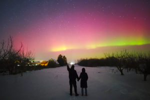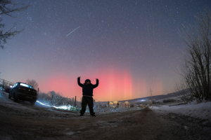 Nos... a további műsor már történelem. Top 3 napsugárzásvihar, G4... Kp8... hasonlók. Gondolom sokan láttátok ezt az eseményt. Számunkra az volt látványos, ahogyan a zöld függönyök táncoltak, mentek keletről nyugat felé de olyan intenzitással, hogy megvilágították a tájat is. Mondjuk azt nem volt nehéz a -8°C-ban betonkeményre fagyott 10cm hóval.