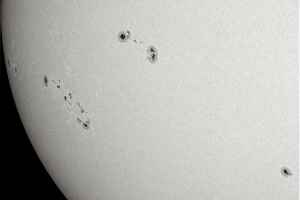 Tovább az észleléshez »Nagy hatalmas napfoltcsoport látszott a Nap felszínén rengeteg apró kiegészítő folttal.Szabadszemmel kis ovális szürkeségként láttam.