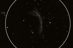 Tovább az észleléshez »Keleti-fátyol-köd. 20x nagyítás, 156' látómező. Ehhez anno nem tudtam értelmes leírást csatolni. A táborban viszonylag felkapott lett ez a rajz. Utóbbi észlelések alapján: könnyen kivehető szálas szerkezet, valahogy feltűnőbbnek érzékeltem, mint a fényesebb NGC 6960-ot.