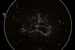 Tovább az észleléshez »22:09-22:24 UT 5,5 mm 60° Premium Flat Field -> 218x, 17' 218x: aránylag sűrű. Rövid póklábak. Néhány hézag a belsejében. Sok kitűnő csillag. Megjegyzés: 40,5T-vel spirál vagy polip formájú.