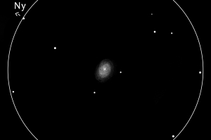 Tovább az észleléshez »Örvény-köd. 48x: Látszik az őket összekötő ív, de a spirálkarok még nem kivehetőek, csupán enyhe kontrasztú csomókat tudtam megkülönböztetni. A látómező mérete 65'.