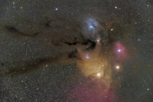 Tovább az észleléshez »A VCSE ausztriai észlelőhétvégéjén készült felvételem, az Antares régióról. A Trahütten település közelében lévő szállásunk melletti észlelőréten kiváló lehetőég nyílt az alacsonyan, délen elhelyezkedő mély-ég objektumok észlelésére. A Skorpió csillagképben található ködösség a nyári égbolt egyik legszebb objektuma. A képen alul található az Antares, egy vörös óriáscsillag, ellette a Messier 4 gömbhalmaz. Rajtuk kívül emissziós ködök, sötétködök és reflexiós ködök is megtalálhatók a felvételen. A ködkomplexum magjában található a Rho Ophiuchi kettőscsillag, ami 360 fényév távolságban vannak tőlünk.